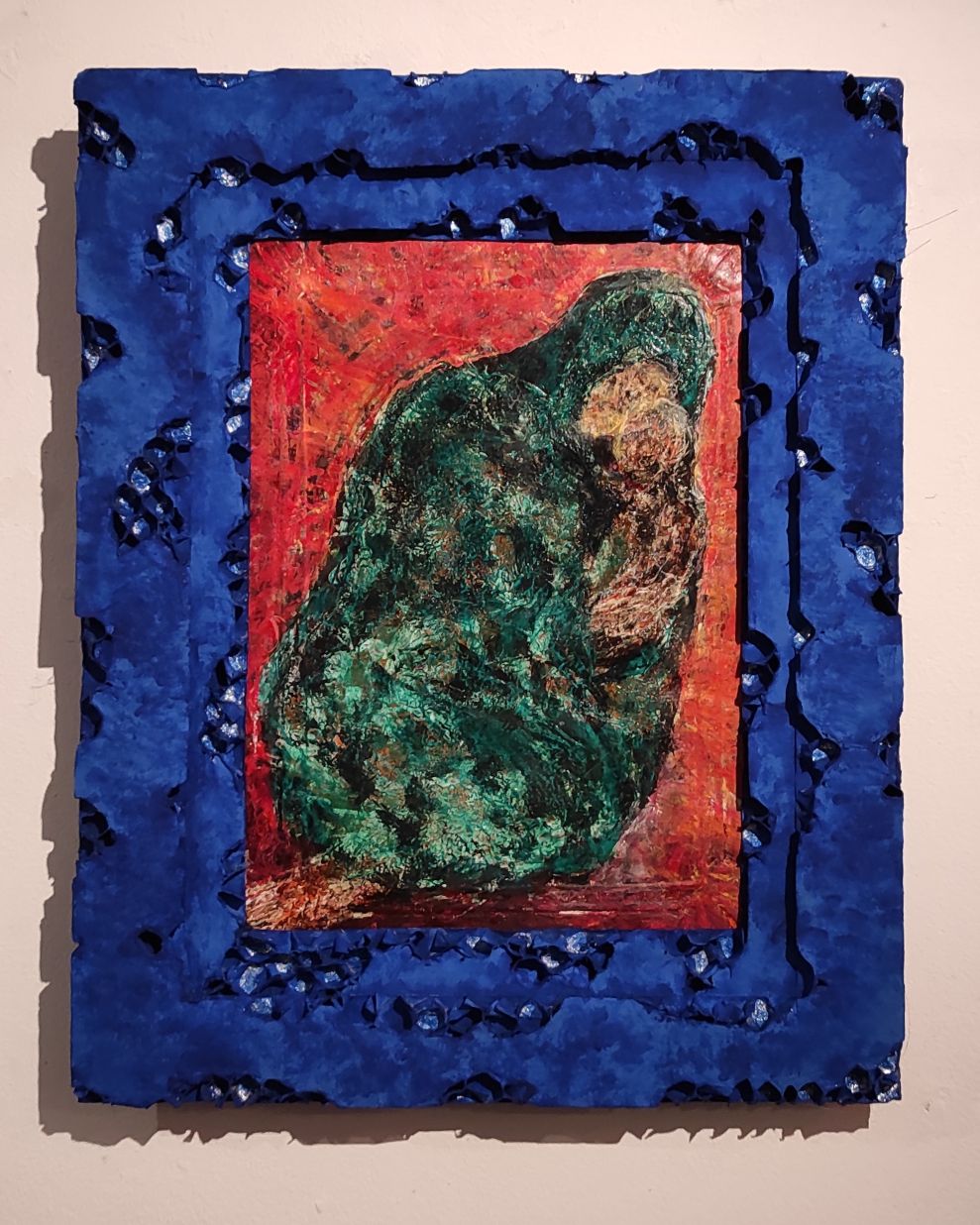 Acryl, Kreide, Binder auf Karton und Waben-Pappe